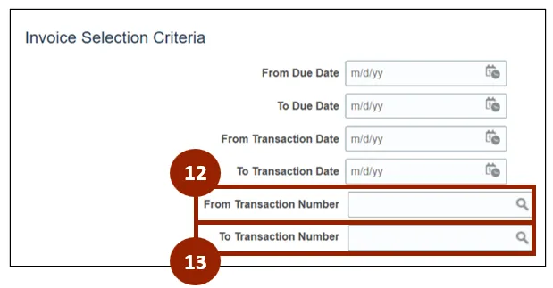 Step 12. In the From Transaction Number search field, enter or select the starting transaction number for the invoices you wish to select.