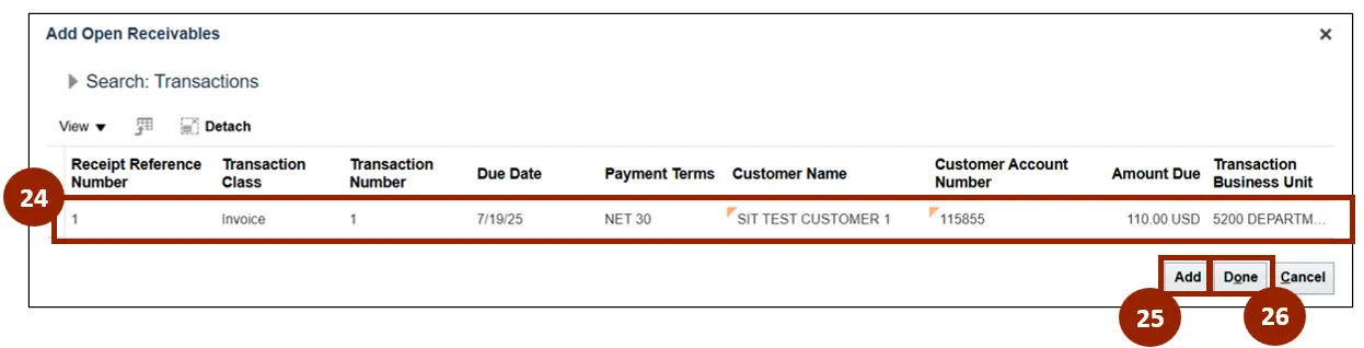 Step 26. Click Done to close the Add Open Receivables window.
