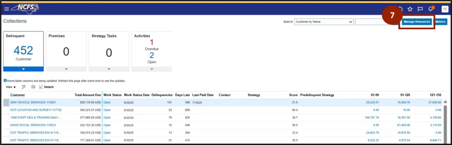 Step 10. To navigate to the Customer page within the Collections Manager, click on the Customer Name.