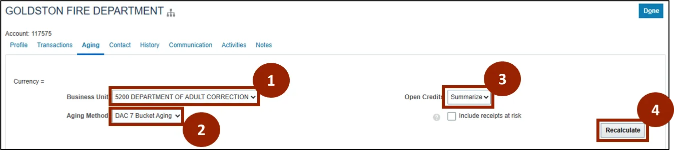 To customize the aging information displayed, follow the steps below. There are 5 steps to complete this process.