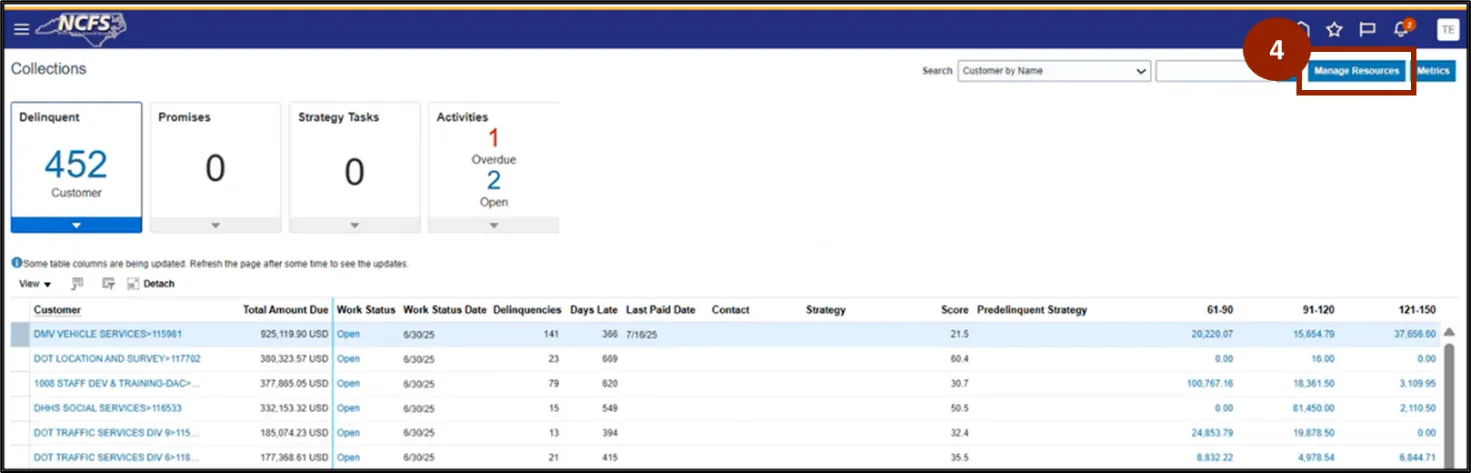 NCFS users can manage collections by navigating the Collections Manager dashboard. Where they can access key tasks, review customer information, and complete collection activities efficiently.