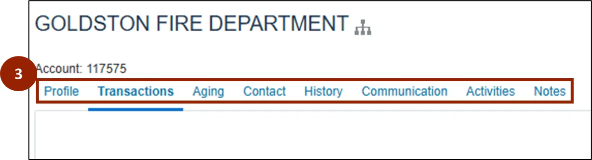 Within the Transactions tab of the Customer page, Collectors have quick access to customer information, such as outstanding balances, payment history, and other relevant transactions details.