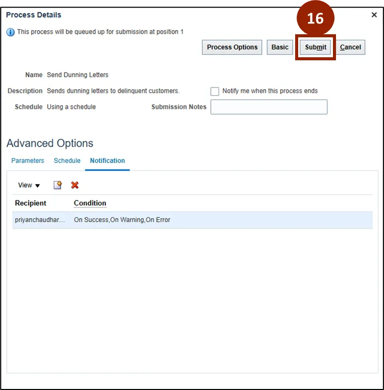 Step 16. When schedule and notification preferences are updated, click Submit.