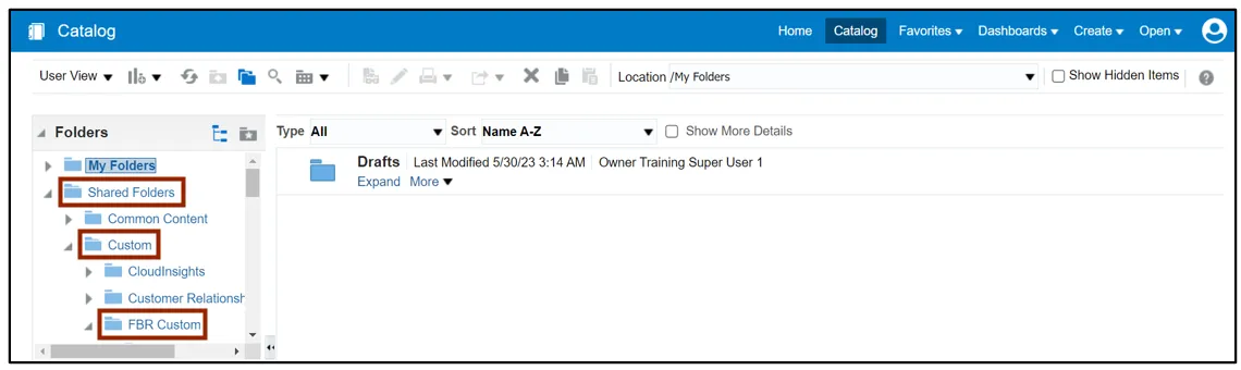 Step 3.    Under the Folders pane, click the Shared Folders and then click the Custom folder. Furthermore, click the FBR Custom folder.