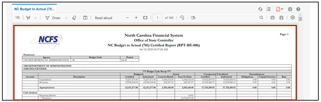 To run NC Budget to Actual (701) Certified Report (RPTBE006) in NCFS, please follow the steps below. There are 8 steps to complete this process.