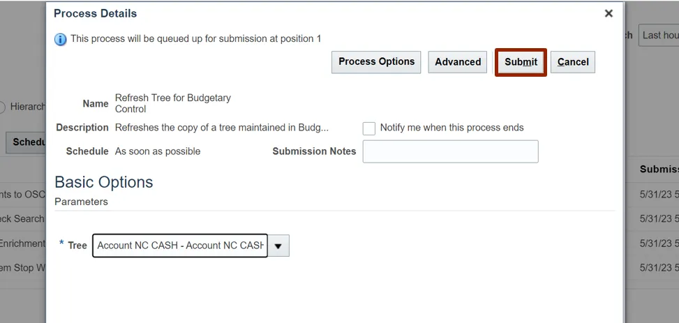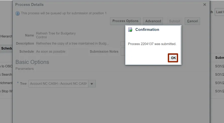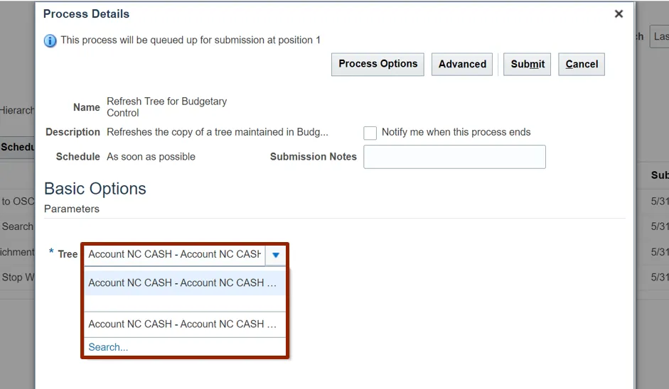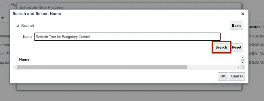 Step 8. Select the Refresh Tree for Budgetary Control from the result.