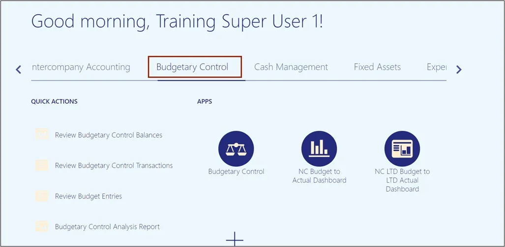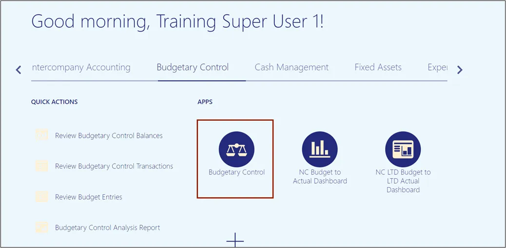 Step 1. Navigate to Home page and then click the Budgetary Control tab.