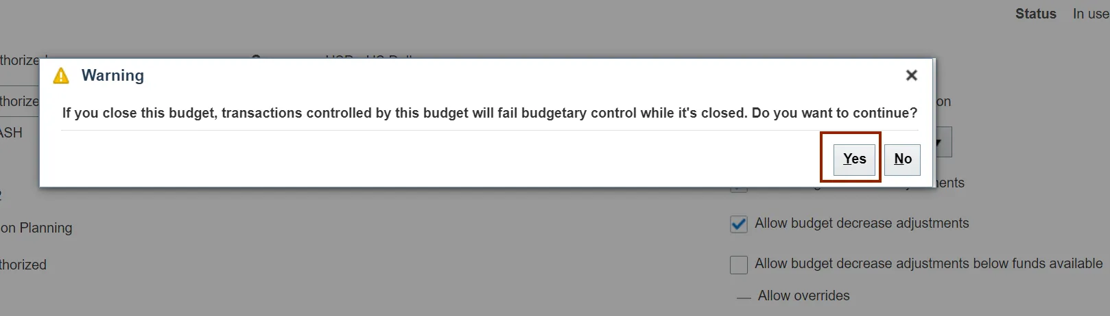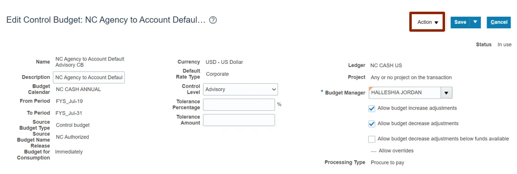 Step 8. The status of the Control Budget is updated to In-Use.