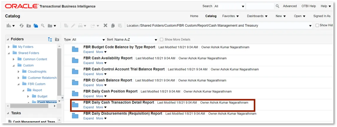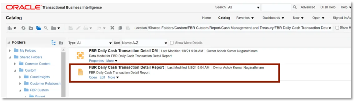 Step 3. Click Open under the FBR Daily Cash Transaction Detail Report.