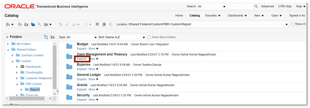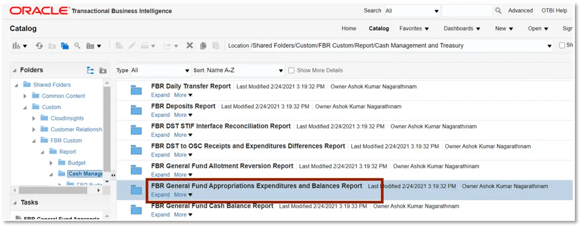 Step 2. Click Expand under the FBR General Fund Appropriation Expenditures Balances Report.