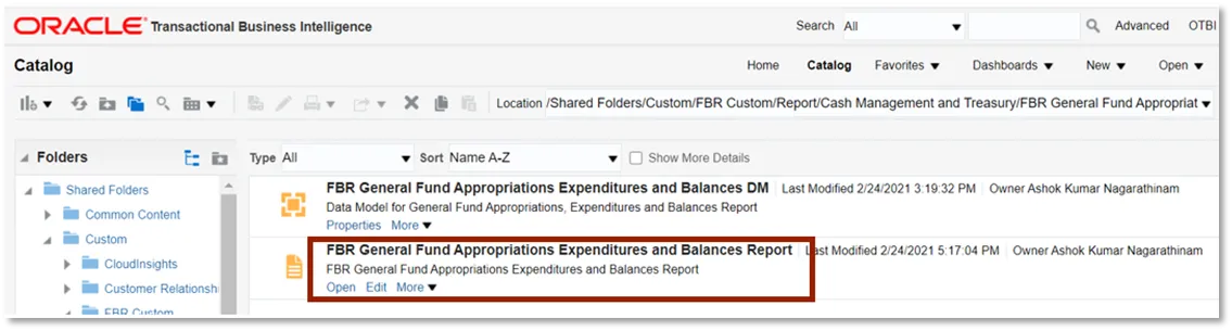 Step 3. Click Open under FBR General Fund Appropriations Expenditures and Balances Report.