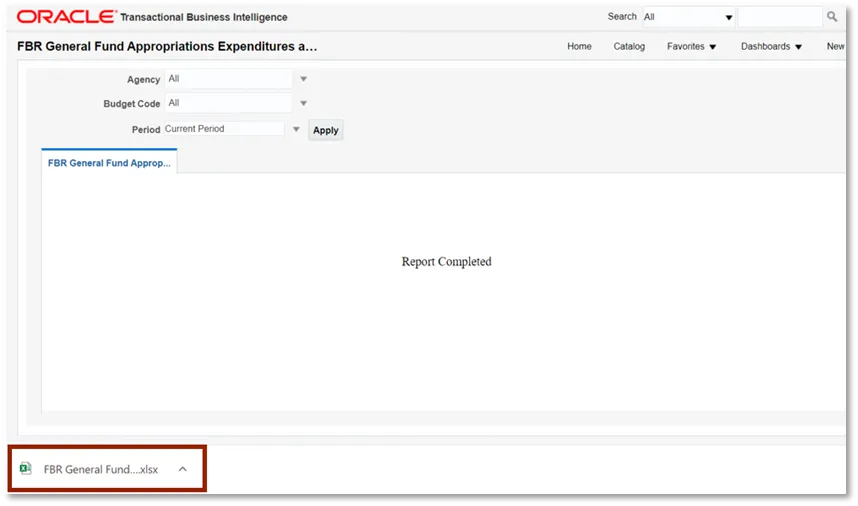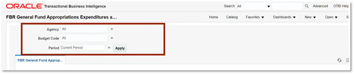 Step 4. Select the desired Agency, Budget Code, and Period dropdowns. Then click Apply.