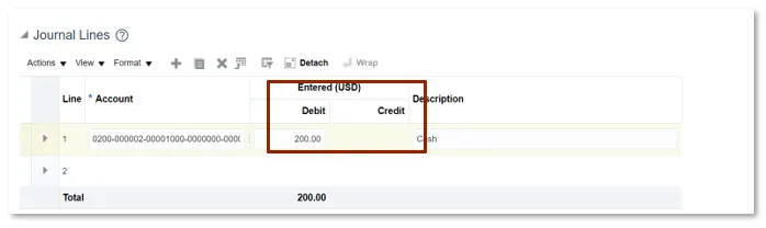 Step 10. Enter an amount in either the Debit or Credit fields (as appropriate) for each line that contains accounting information.