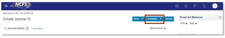 Step 13. Click Complete to create the journal.