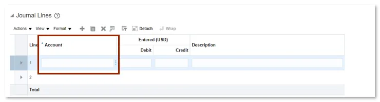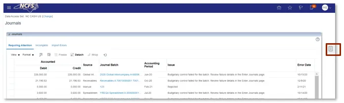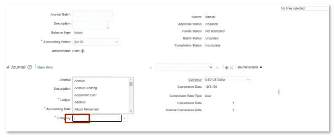 Journal Batch and Attachments are not system requires fields but still can be entered. The Journal Batch name must be unique and include only one journal for each batch.