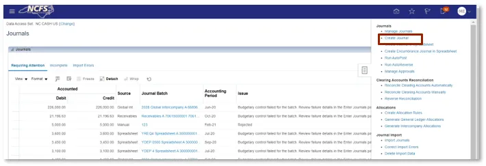 Step 4. From the task list, click Create Journal under the Journal section.