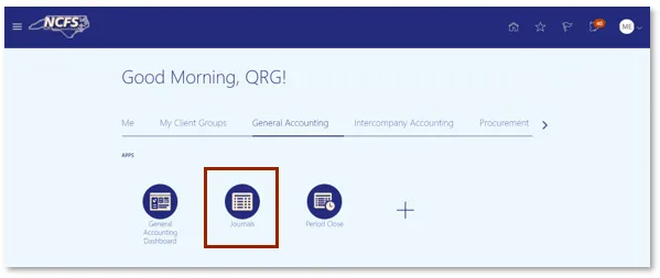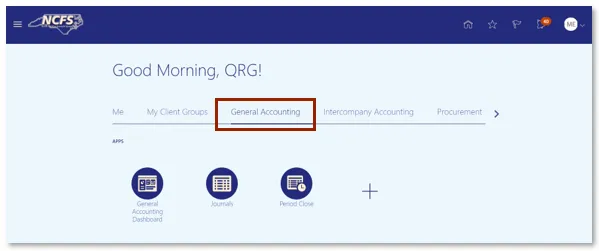 Step 1. Access the NCFS Home Page and click the General Accounting icon.
