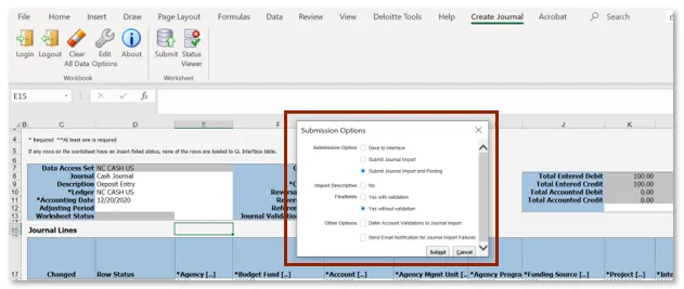 Step 1. Click the Submit button in the Create Journal menu bar to submit the journal(s).