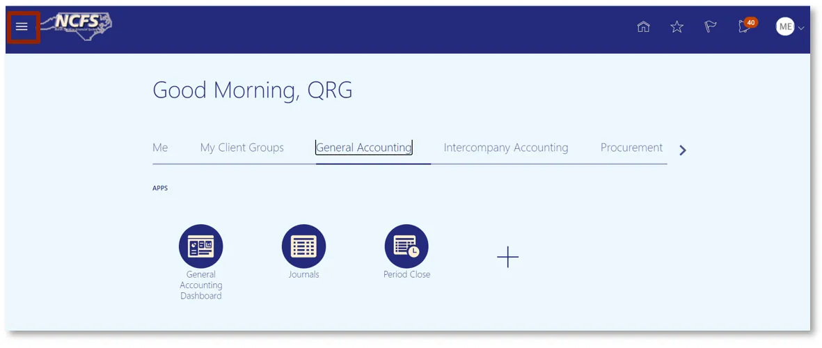 Step 1.    Click the Navigator icon found in the left corner of the home page.