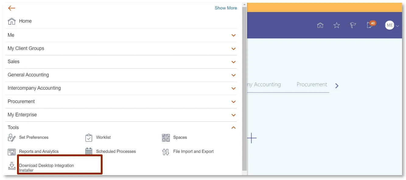 Step 2.    Navigate to the Tools Group and click the Download Desktop Integration Installer.