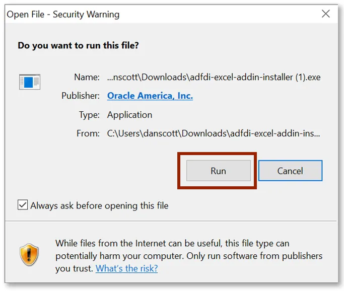 Step 3.    Click the Run option to install.