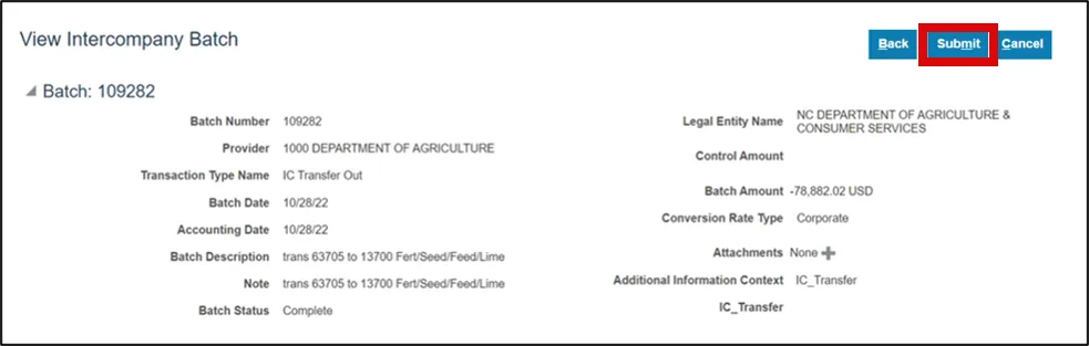 Re-Submit Intercompany Transfer Batch