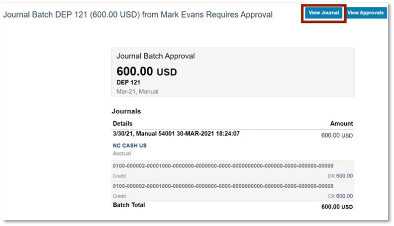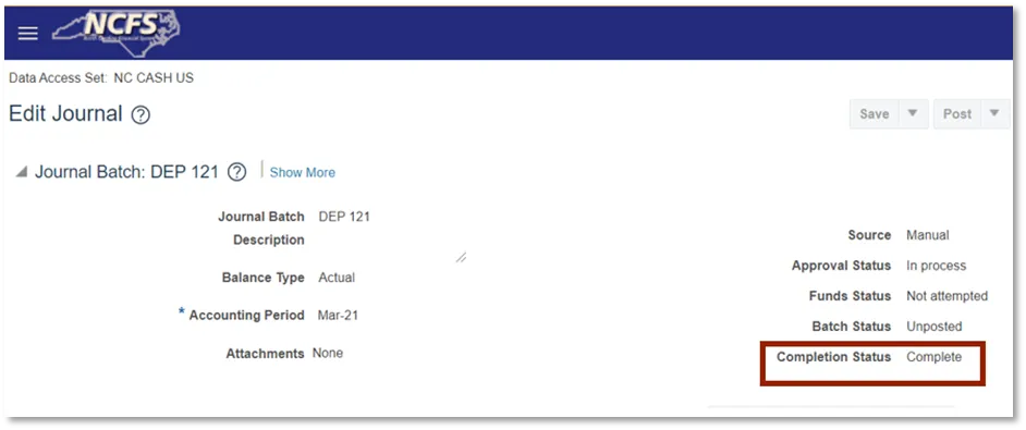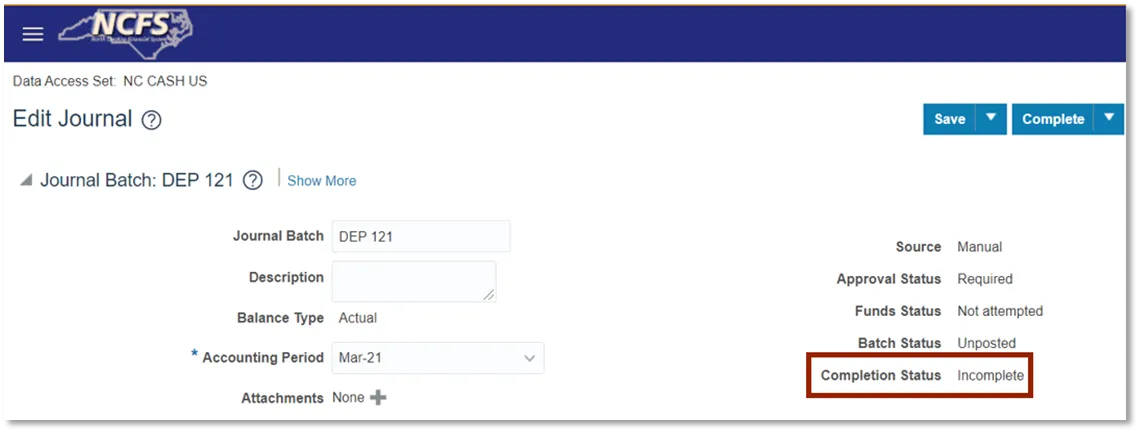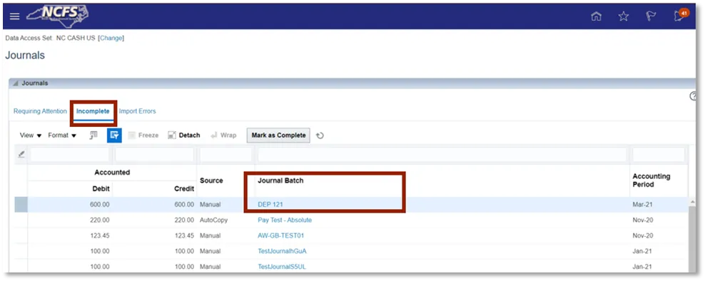 Step 2. Click Incomplete and locate the Journal Batch Name Hyperlink to view the withdrawal.