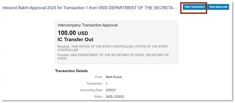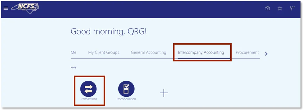 Step 1. Access the Intercompany Accounting Module and click Transactions.