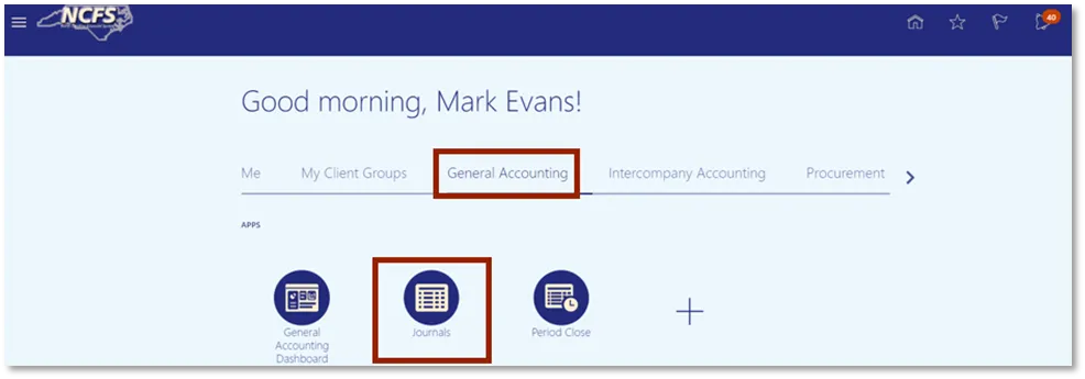 Step 1. Navigate to the General Accounting Module and click Journals.