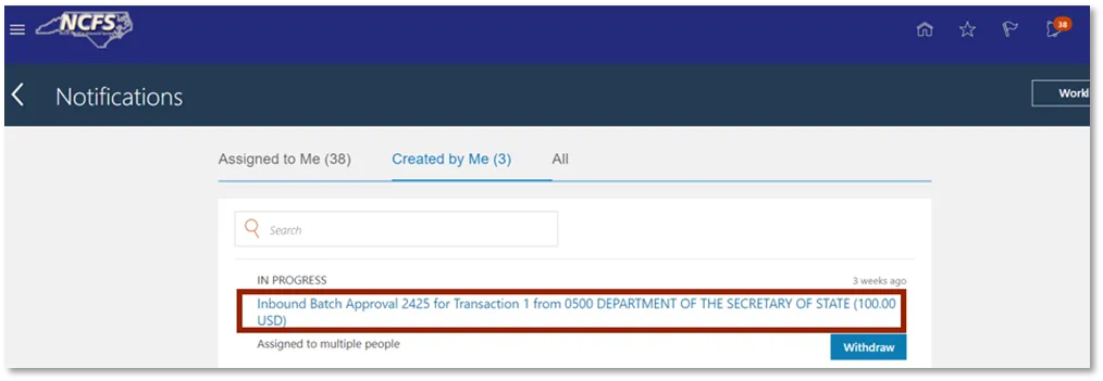 Step 1. Identify the transaction to withdraw, then click Withdraw.