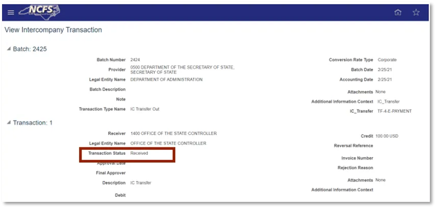 To withdraw an intercompany transfer, follow the steps below. There are 6 steps to complete this process.