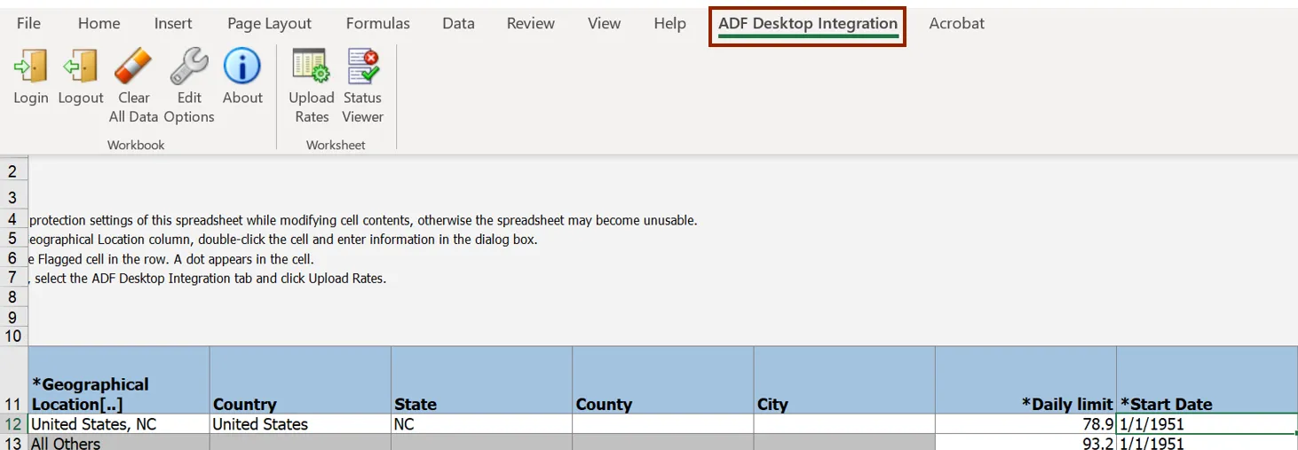 Step 13. On the spreadsheet, click the ADF Desktop Integration tab.