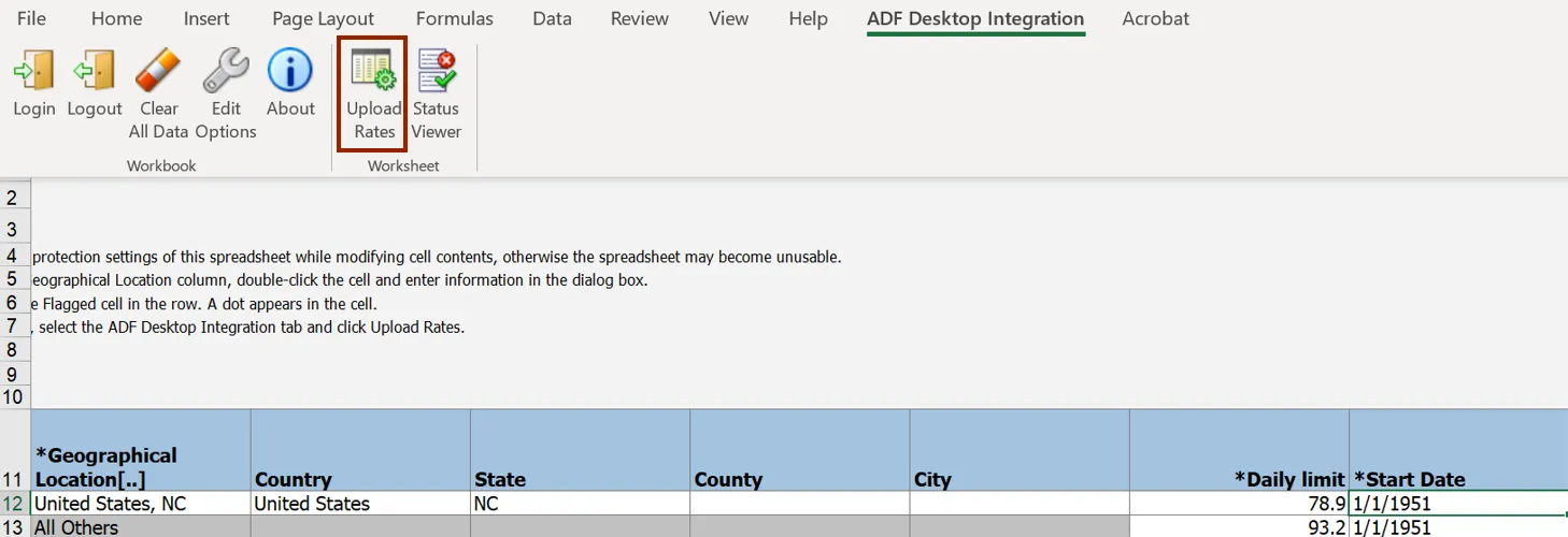 Step 14. Click the Upload Rates button. The Upload Options pop-up appears.