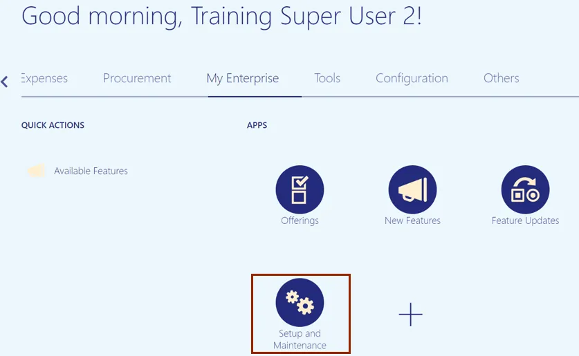Step 3. Click the Setup and Maintenance app. The Setup page opens.