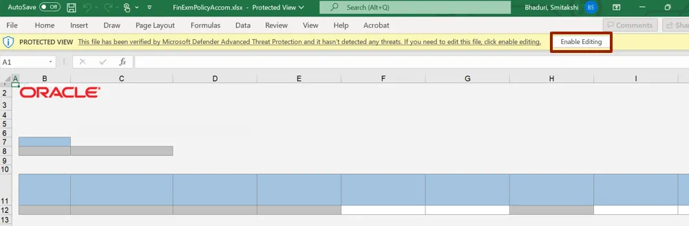 Step 9. The Create Accommodations Rates spreadsheet opens. Click the Enabling Editing button.