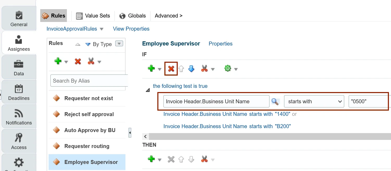 Managing Workflow-Related Configuration using the steps above to add, delete, and update the conditions of AP Invoice Approval Rules in the NCFS.