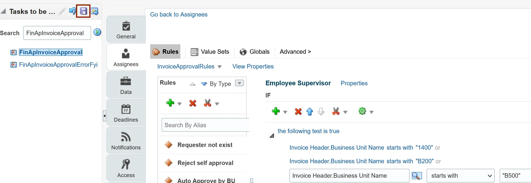 Step 21. In the top left corner of the BPM Worklist page, click on the Save icon to save the changes.