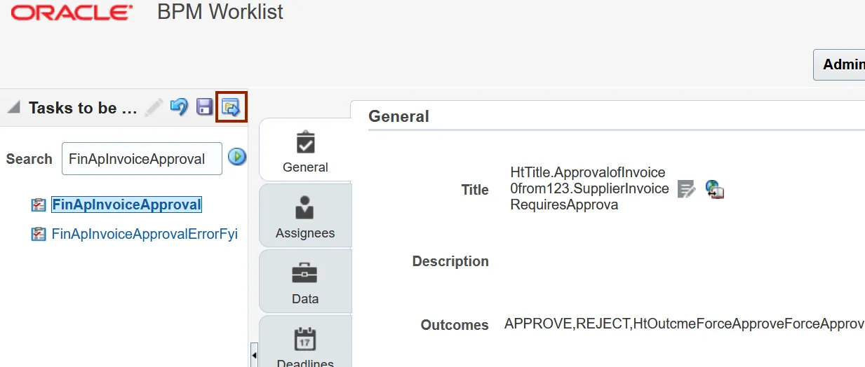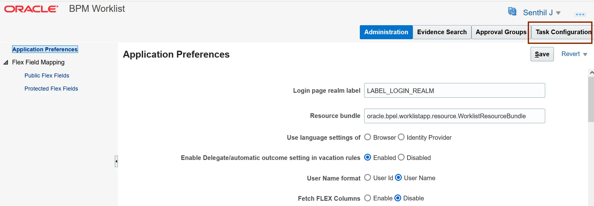 Step 5. In the top right corner of the BPM Worklist page, click the Task Configuration button.