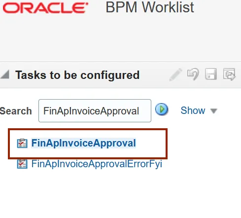 Step 6. Enter the Search field and click the Search icon. In this example, we choose FinApInvoiceApproval.
