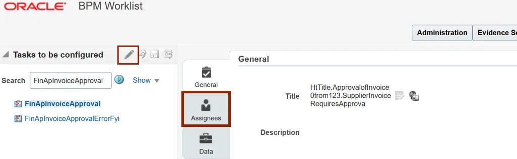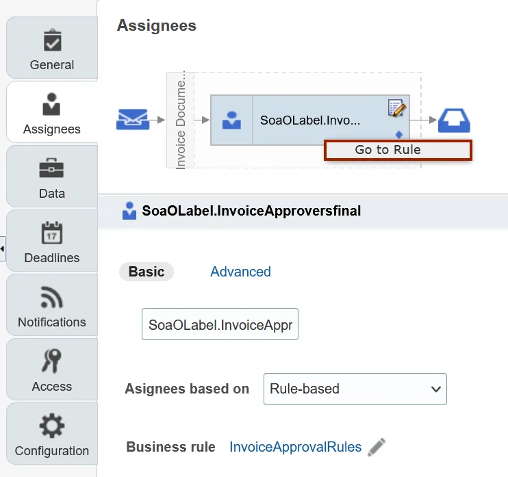 Step 8. Click the Edit icon to update the Invoice Approval Configuration and click the Assignees tab to open the Invoice Business Rules.