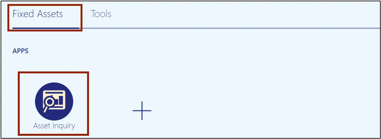 Step 2. On the Home page, click the Fixed Assets tab and select the Asset Inquiry app.