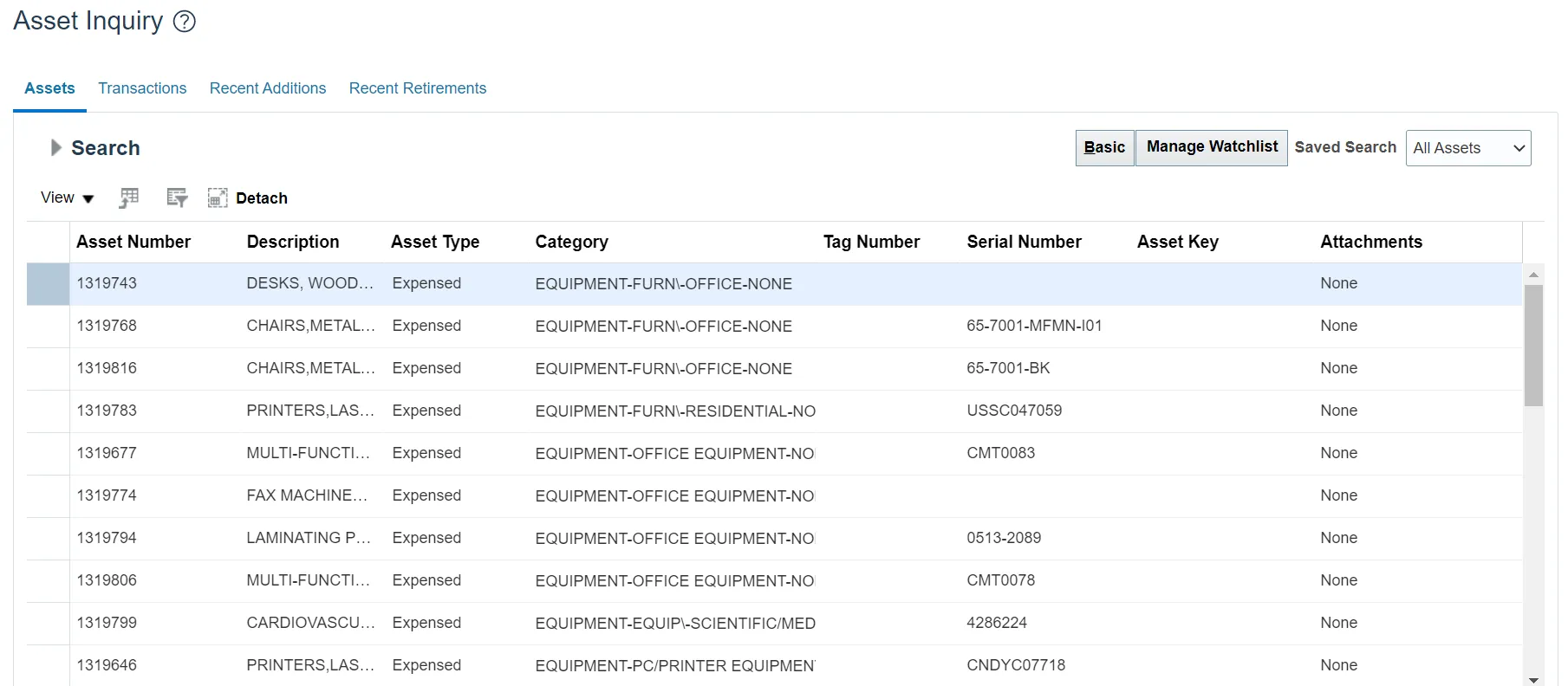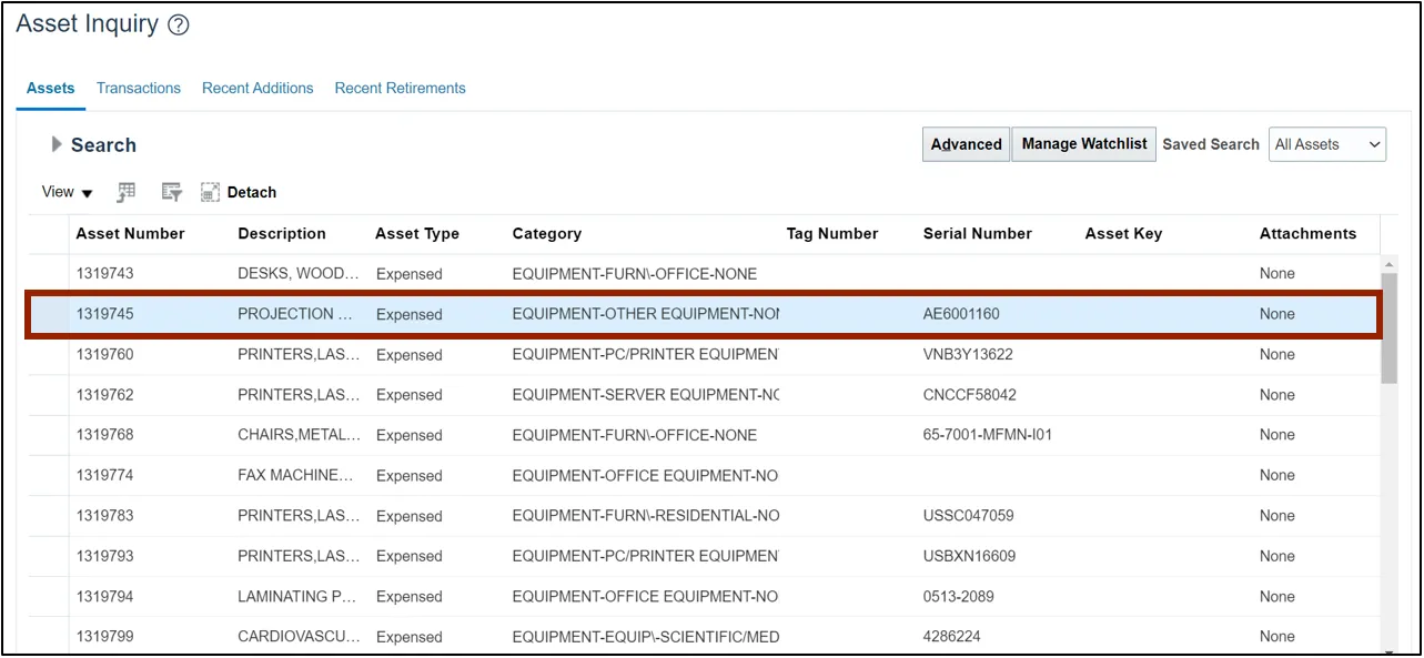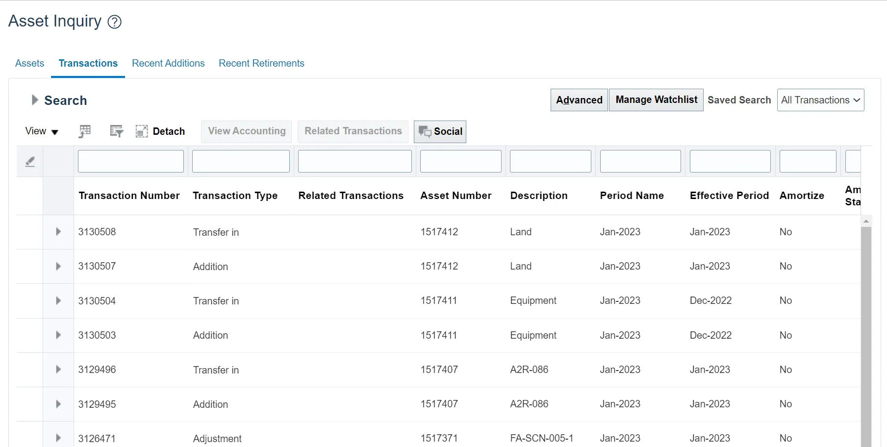 View assets and asset transactions through a basic or an advanced search using the steps above.