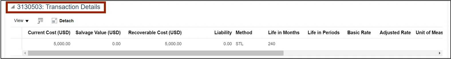Step 16. Scroll down to view transaction information on the 3130503: Transaction Details section.