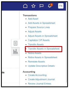 Step 4.    Click the Transfer Assets in Spreadsheet task.