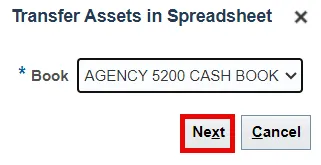 Step 5.    A popup will appear. Confirm you are using the correct accounting book (typically your agencies Cash book) and click Next.