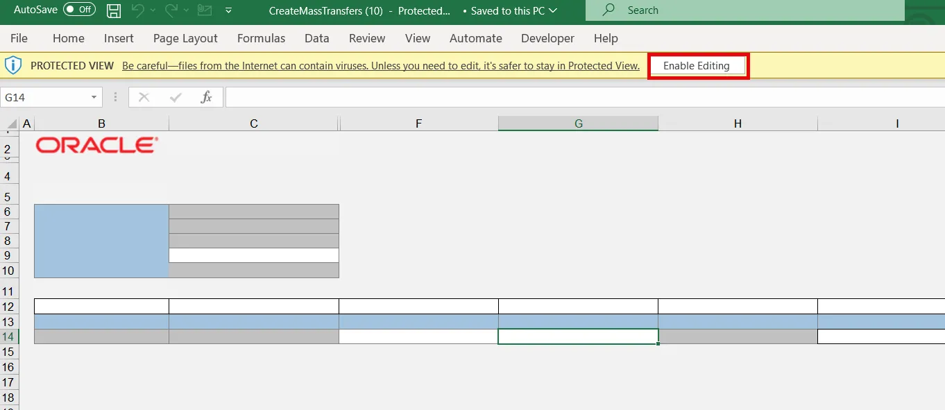 Step 7.    An excel sheet will open. Click Enable Editing.