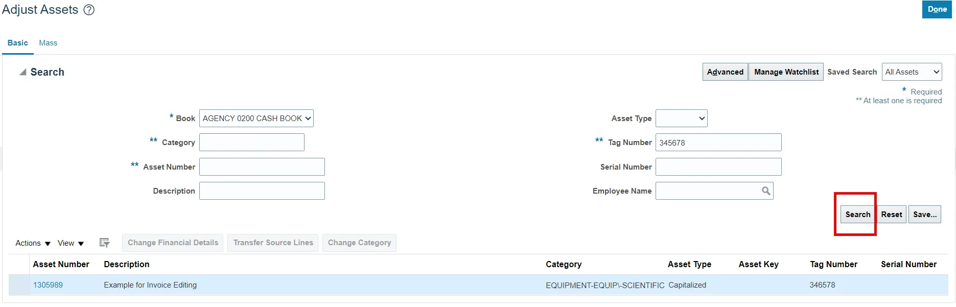 Edit the invoice number on a fixed asset record for a manually added asset using the steps above.