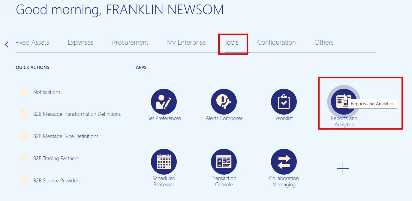 Step 2.    On the Home page, under the Tools tab, click the Reports and Analytics app.