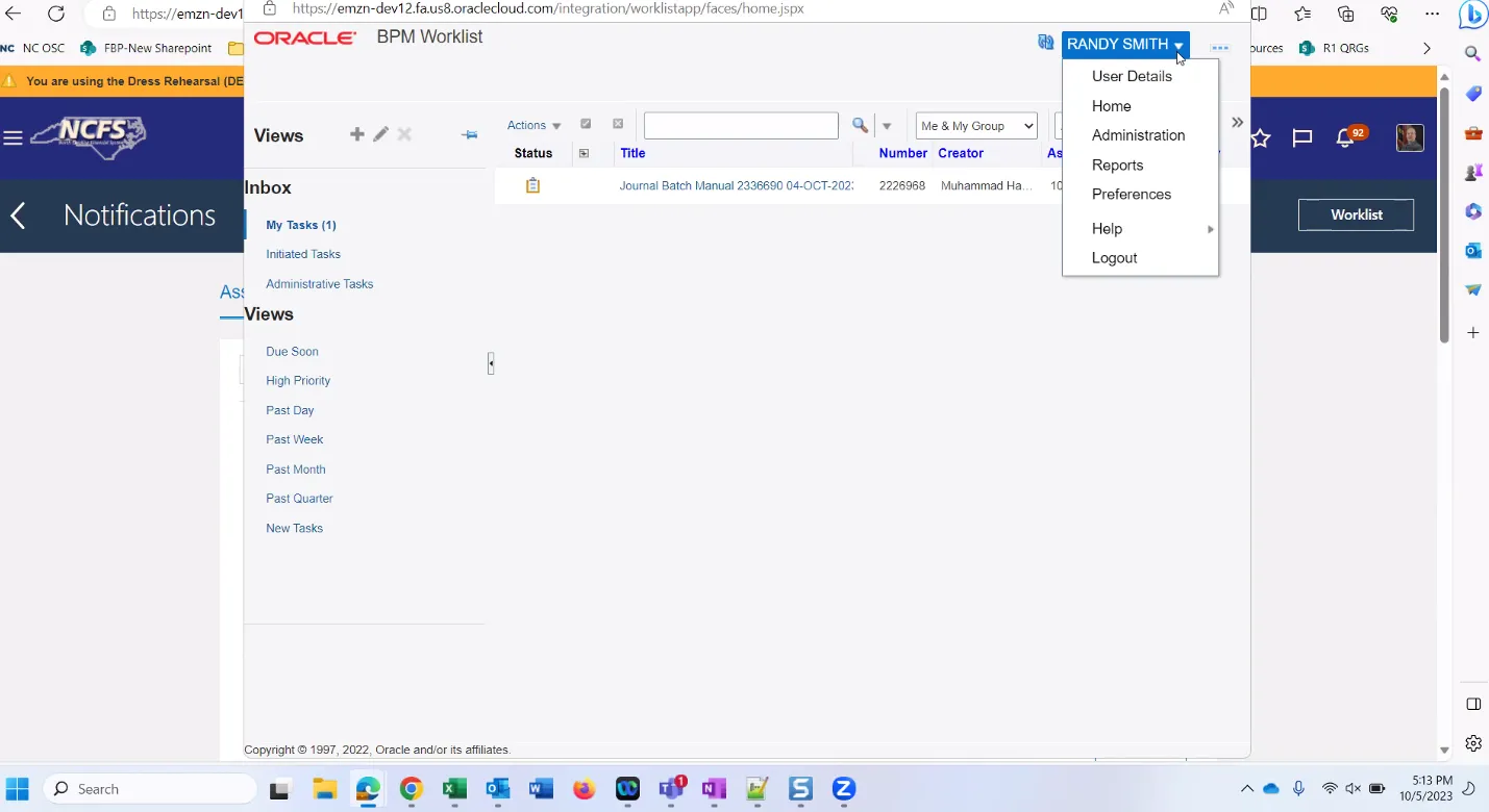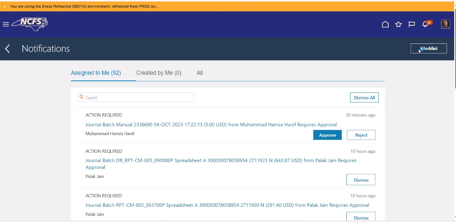 Step 1. Click Notification Bell, then click Worklist.