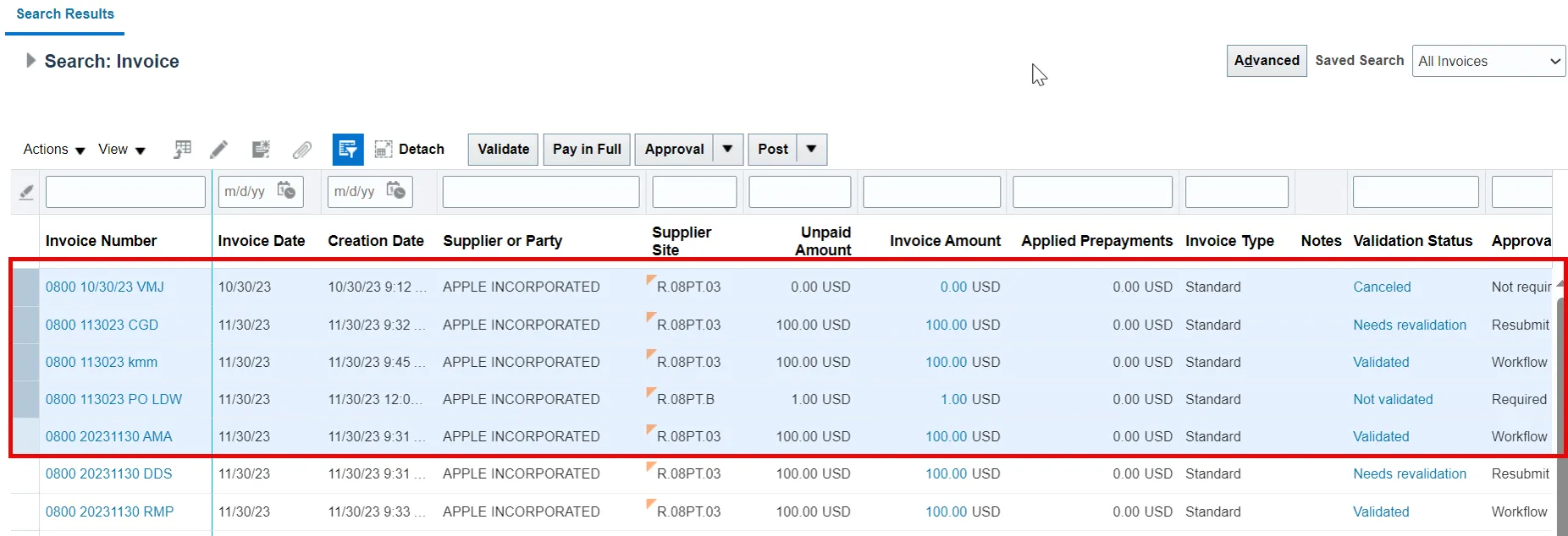 - Sort records in the Search Results table, as desired (optional).
